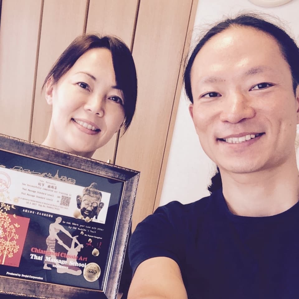 先生の丁寧な指導、濃厚な授業内容、毎回授業が楽しく充実した時間を過ごすことが出来ました。私はセラピストの仕事をしています。毎日過労働で自分の身体のメンテナンスとして「二人でするヨガ」のタイ古式マッサージに興味がありました。チェンマイ式タイマッサージのすごい所は自分の身体に負担が少なく相手に実感させやすいところと、揉み返しがなくやればやる程お互いの身体が柔らかくなる事で喜びにもつながる、まさに理想の施術です。先生の人の接し方も同業者として勉強になりました。先生の教えるチェンマイ式タイマッサージに出会えて良かったです。ありがとうございました。