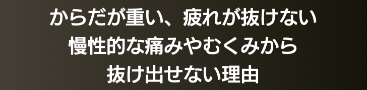 その結果、からだのあちこちに負担がかかってしまい、常にからだが重く、慢性的な痛みや不快感が続くようになってしまいます。