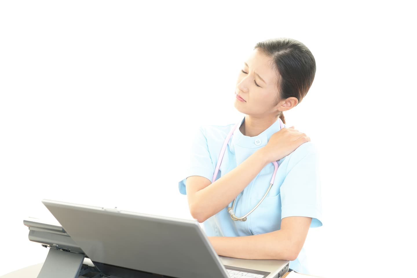 下を向く姿勢が続くと、首が緊張してガチガチに凝ってきます。